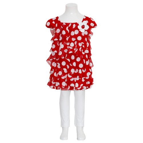 Get Your Discount And Save Price On Rare Editions Girls Cascade Ruffled Mesh Dress Outfit Set w/ Leggings , Red , 3T