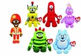 Low Prices Ty Beanie Baby Set of 5 Yo Gabba Gabba Plush Brobee, Todee, Plex, Foofa, Muno + BONUS Dj Lance Doll & Free Pack Of Yo Gabba Gabba