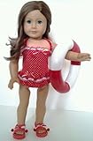 Get Your Low cost and Discount on RED POLKA DOT SWIMSUIT FOR AMERICAN GIRL DOLLS WITH SWIM RING AND SANDALS